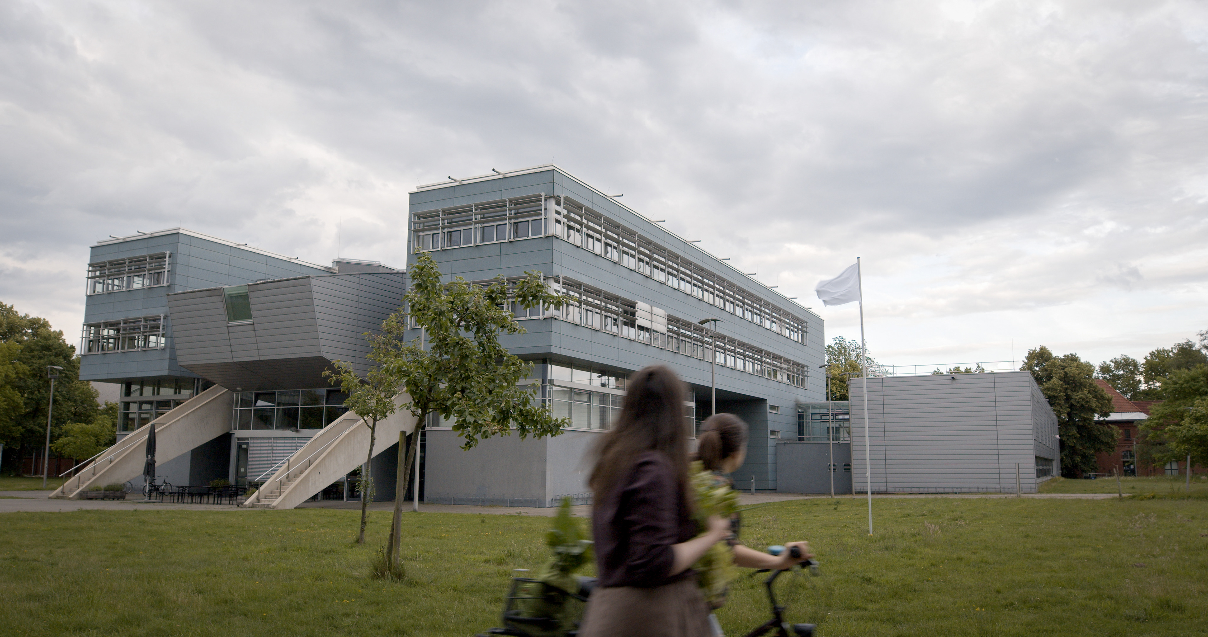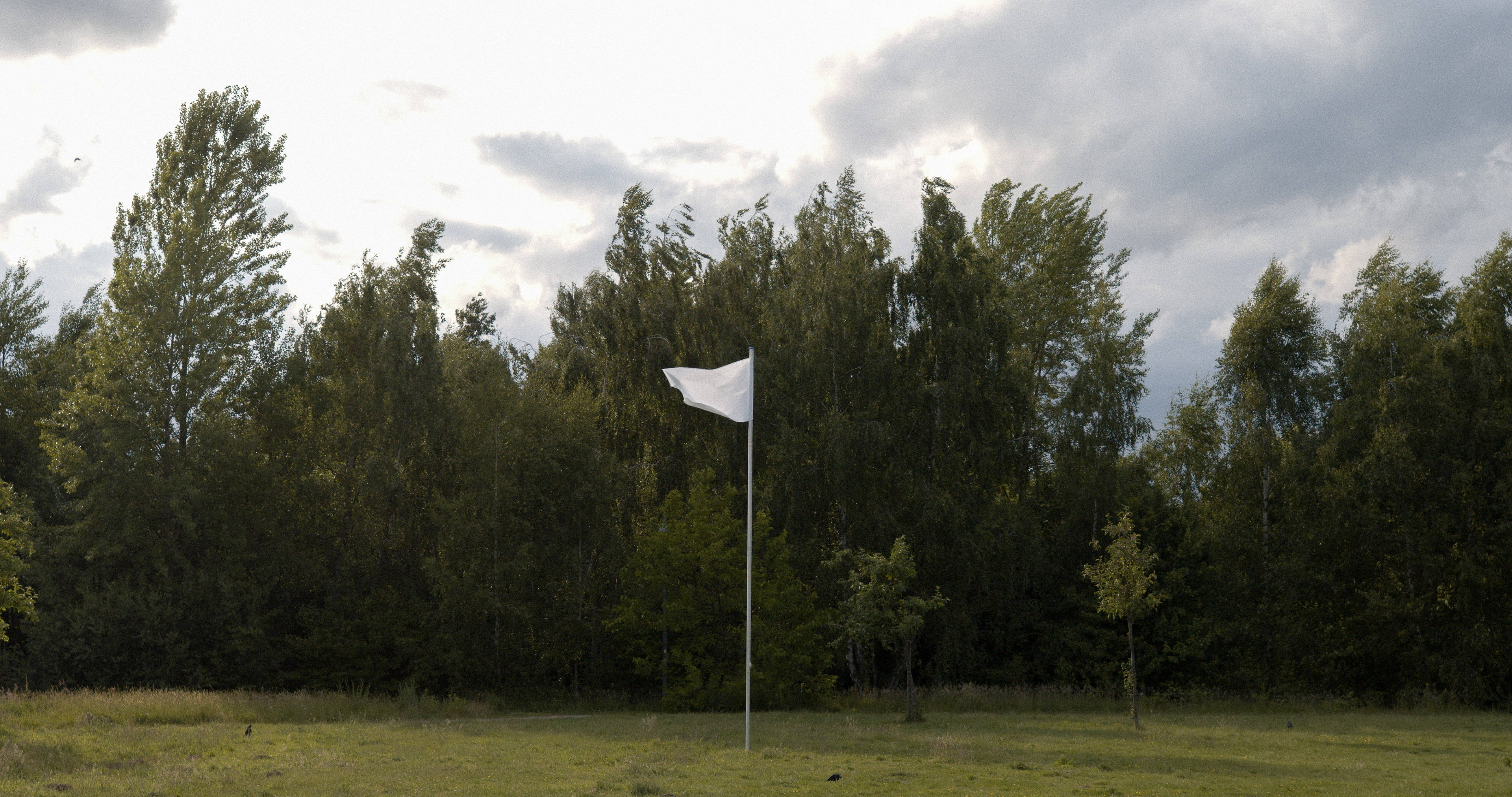 Fahnenmast mit weißer Flagge vor dem Fenster des Rektorats der Kunstakademie Münster